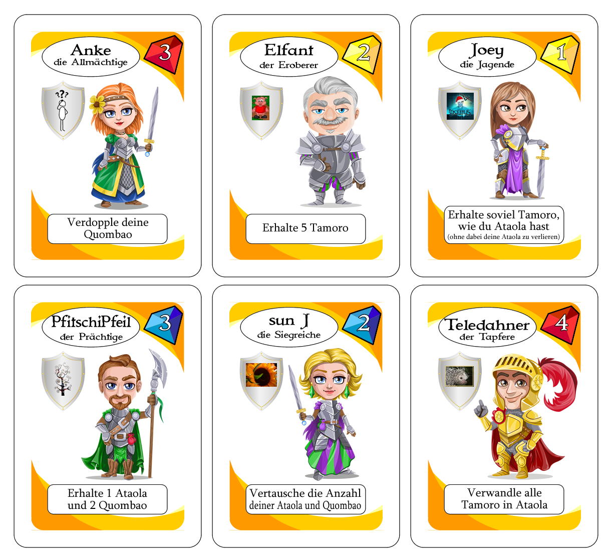 Sollte er mit Elfant beginnen? Einzelkämpfer schaute sich den Helden an. 2 Quombao kostete es, die Karte zu spielen. Das konnte er rechts oben ablesen. Im Gegenzug würde er dafür 5 Tamoro bekommen. Und natürlich den Helden abwerfen.