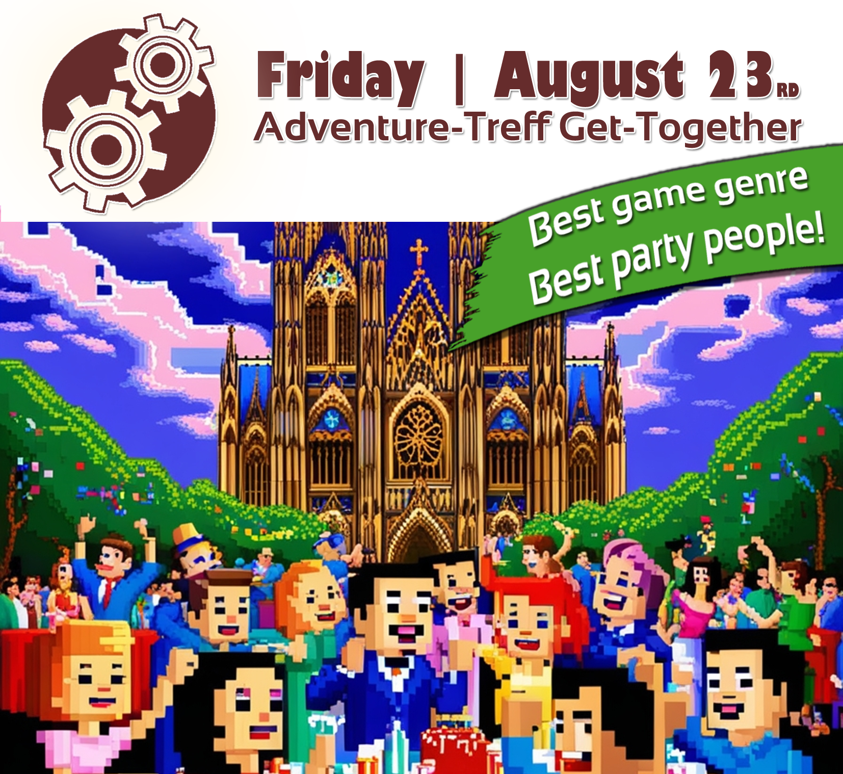 | Warum? | Trefft die zu diesem Zeitpunkt garantiert schon paralysierte Adventure-Treff.de-Redaktion, aber auch Forenmitglieder, andere Adventure-Fans und auch den ein oder anderen Entwickler oder Publisher in persona! Desweiteren: Macht Fotos mit Leuten, die ihr sonst nur virtuell kennt oder diskutiert über Euer Lieblingsgenre in entspannter Atmosphäre! Jeder Interessierte kommt mit möglichst guter Laune vorbei. Getränke und Essen werden selbst bezahlt. |