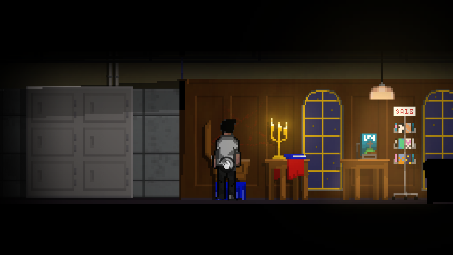 Die Pixelgrafik zeigt genug Details, um eine angemessene Atmosphäre zu schaffen. Dass die diversen Leichen und ihre Verletzungen dabei nicht deutlicher hervortreten, ist ein Pluspunkt, denn das Spiel ist auch so nichts für empfindliche Mägen. Animationen sind kaum vorhanden und wichtige Schlüsselszenen werden per Schwarzblende gelöst.