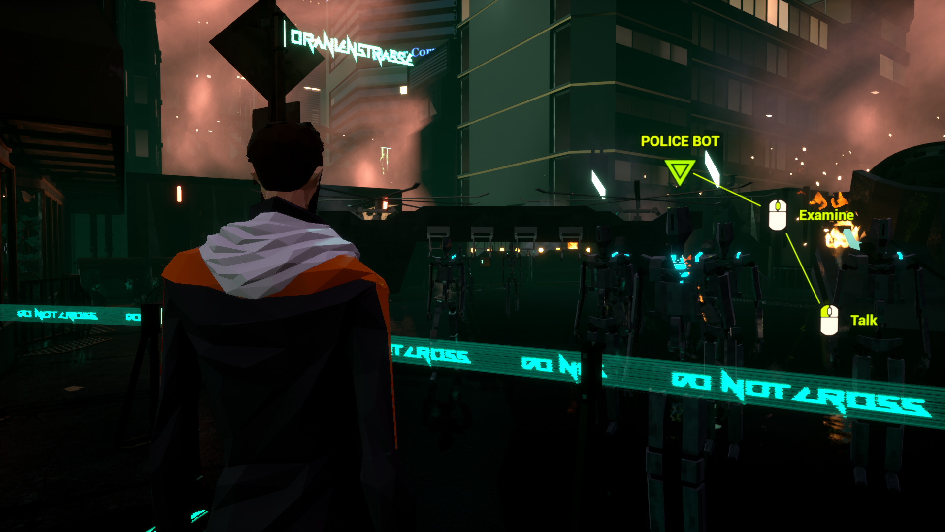 Wer Martin Ganteföhr kennt, weiß, dass er großen Fokus auf die Geschichte seiner Spiele legt, nicht so sehr auf die spielerischen Aspekte. Das passt natürlich zur sonstigen Neuausrichtung des Hamburger Publishers, der seit einigen Jahren eine Abkehr vom ganz klassischen Adventure begonnen hat – und hier macht State of Mind keine Ausnahme. Statt mit einem Point-and-Click-Interface werden die Protagonisten per Gamepad oder Maus und Tastatur durch die Szenarien gesteuert, die Kamera folgt dem Spieler dabei in einer Über-die-Schulter-Perspektive. Per Tastendruck interagiert man mit den diversen Hotspots (Untersuchen, Benutzen, Reden), die von weitem erkennbar in die Spielwelt eingeblendet werden. In den ersten zwei Stunden beschränkt sich das Gameplay auf das Erkunden der Umgebung und das Einsammeln von vereinzelten Gegenständen.