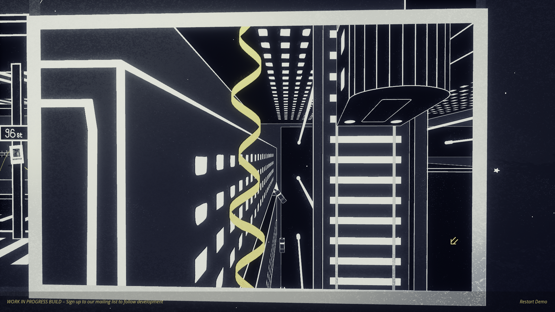 Die grafische Darstellung wirkt auf den ersten Blick eher minimalistisch. Besteht sie doch aus einfachen Strichzeichnungen und auch die Farbauswahl ist sehr eingeschränkt. Doch das täuscht. Die Mischung aus 2D- und 3D-Elementen ist sehr gelungen und verleiht dem Spiel ein Alleinstellungsmerkmal. Überall gibt es Animationen zu entdecken und die Spielfigur durchläuft die Szenen durch ungewöhnliche Perspektiven, wenn zum Beispiel der Gang in eine Stadt aus dem Universum heraus erfolgt.