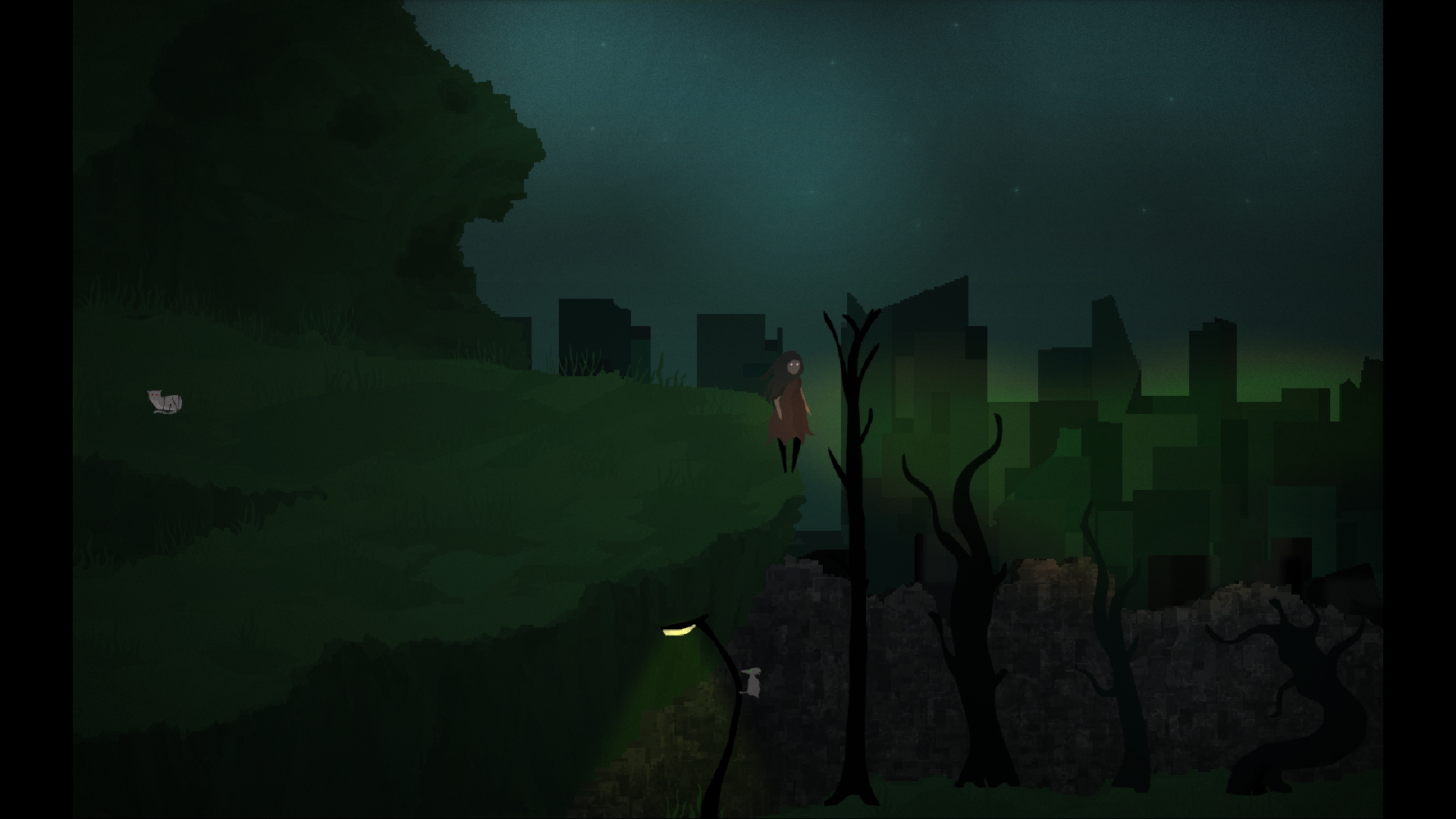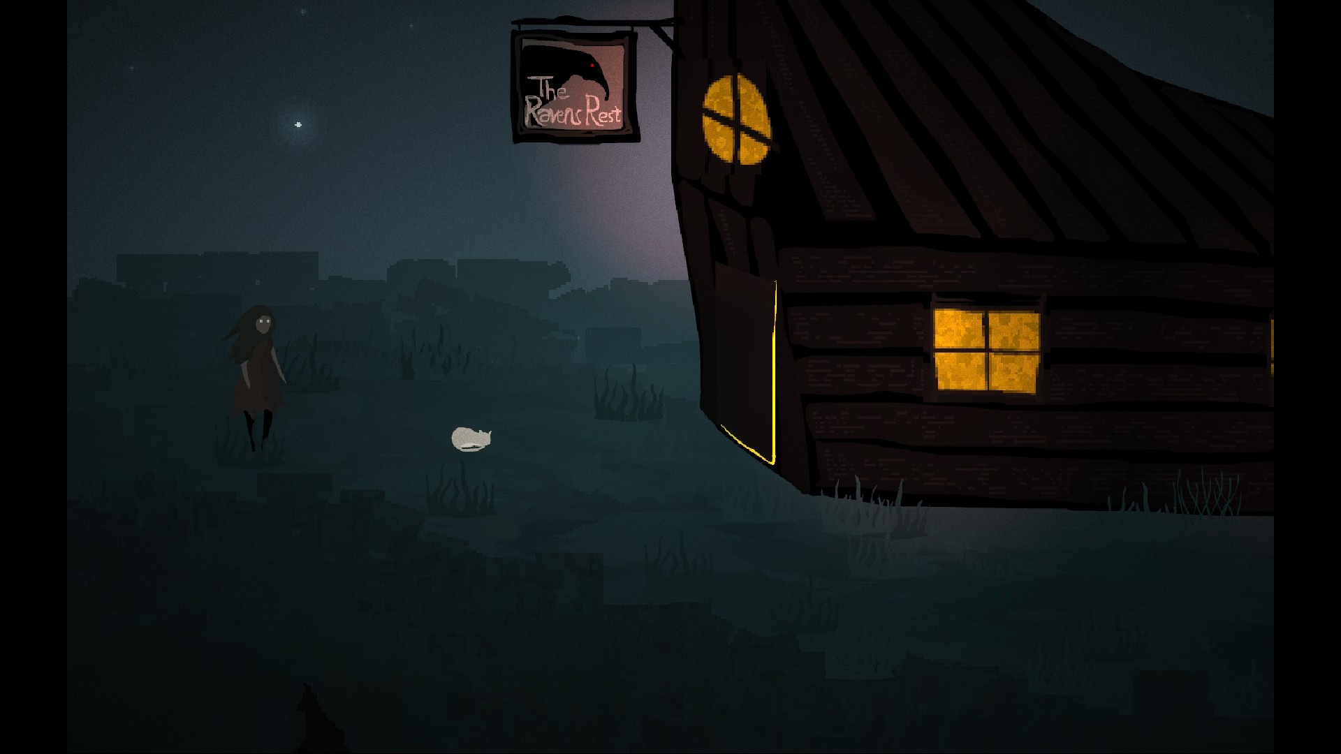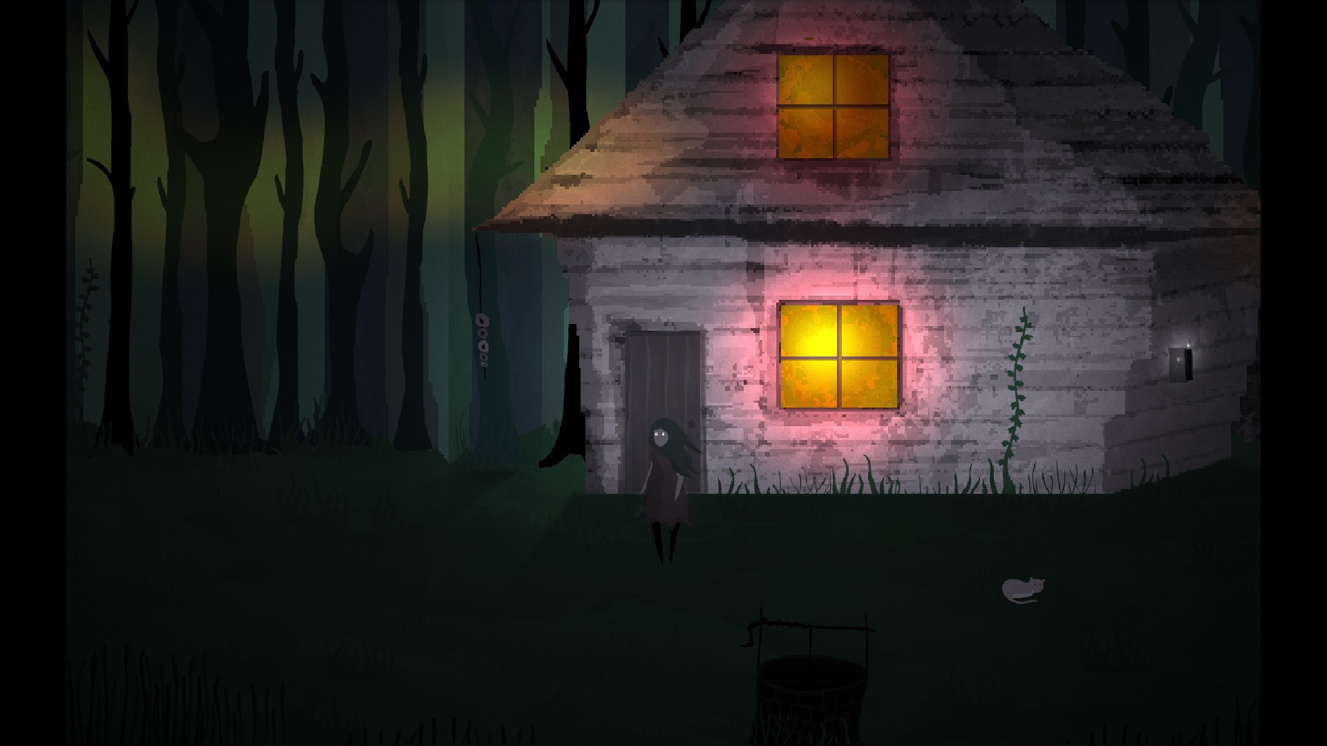 Die Grafik ist minimalistisch gehalten. Gerade die Charaktere sind nur grob gezeichnet. Zum Teil fehlen ihnen Mund und Nase und sie bewegen sich steif. Größtenteils wurden eher düstere Farben gewählt, manchmal ist nur eine Treppe zu sehen und der restliche Hintergrund ist schwarz. Die Randbereiche werden sowieso immer dunkel eingefärbt. Neue Orte sind erst sichtbar, wenn die Protagonistin ihren Weg fortsetzt. Dennoch ist auch im ländlichen Bereich nicht alles so einsam, wie es zunächst scheint. Überall trifft unser Charakter auf Tiere. Teilweise nur in Textform, häufig auch sichtbar, wenn zum Beispiel ein Kühlschrank voll mit Ratten geöffnet wird. Diese Tiere haben dann auch nette Animationen spendiert bekommen. So schließt eine Ratte selbstständig die Kühlschranktür, wenn wir uns ein Stück davon entfernen. Nach und nach werden die Gebiete zivilisierter und der Spieler trifft auf andere mysteriöse Personen. Auch ansonsten findet im Hintergrund meistens Bewegung statt. So wiegen sich Grashalme und Lampen im Wind. Zwar sehen diese alle gleich aus, dennoch tragen sie zur Atmosphäre bei.