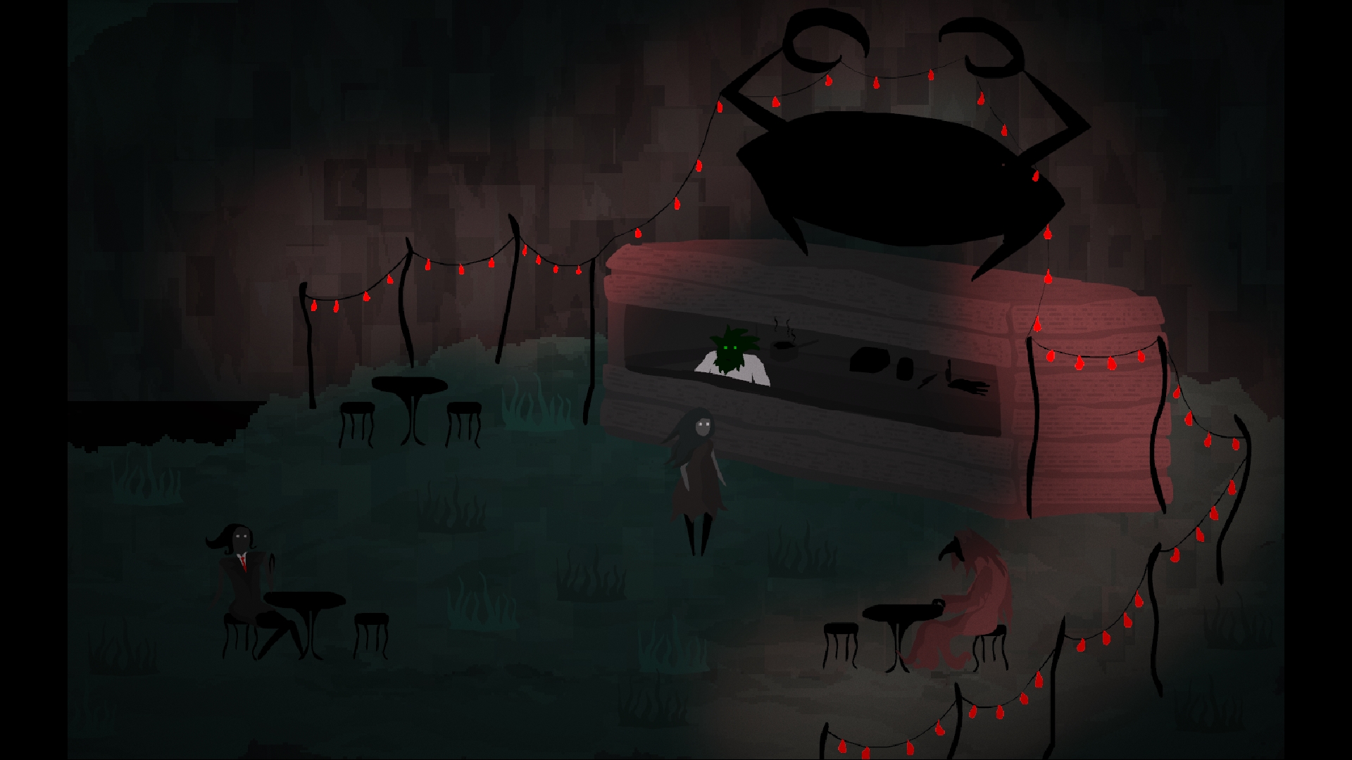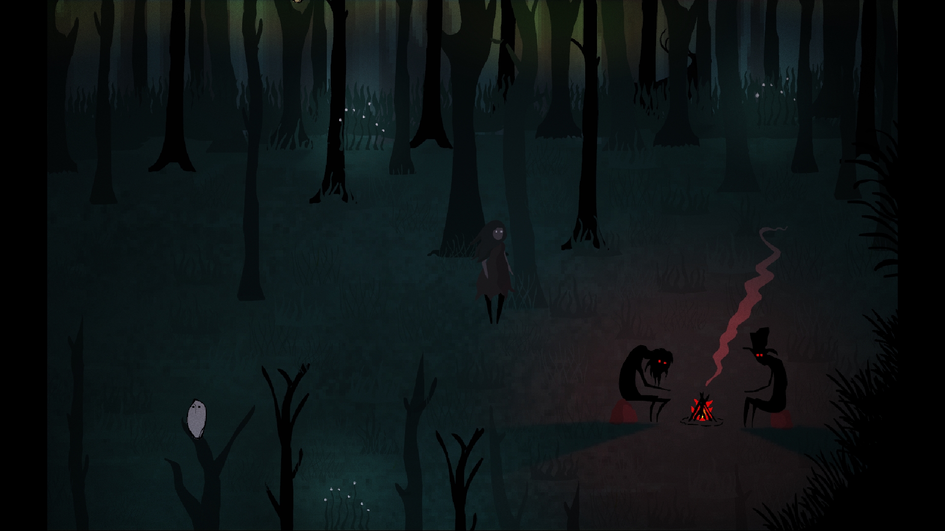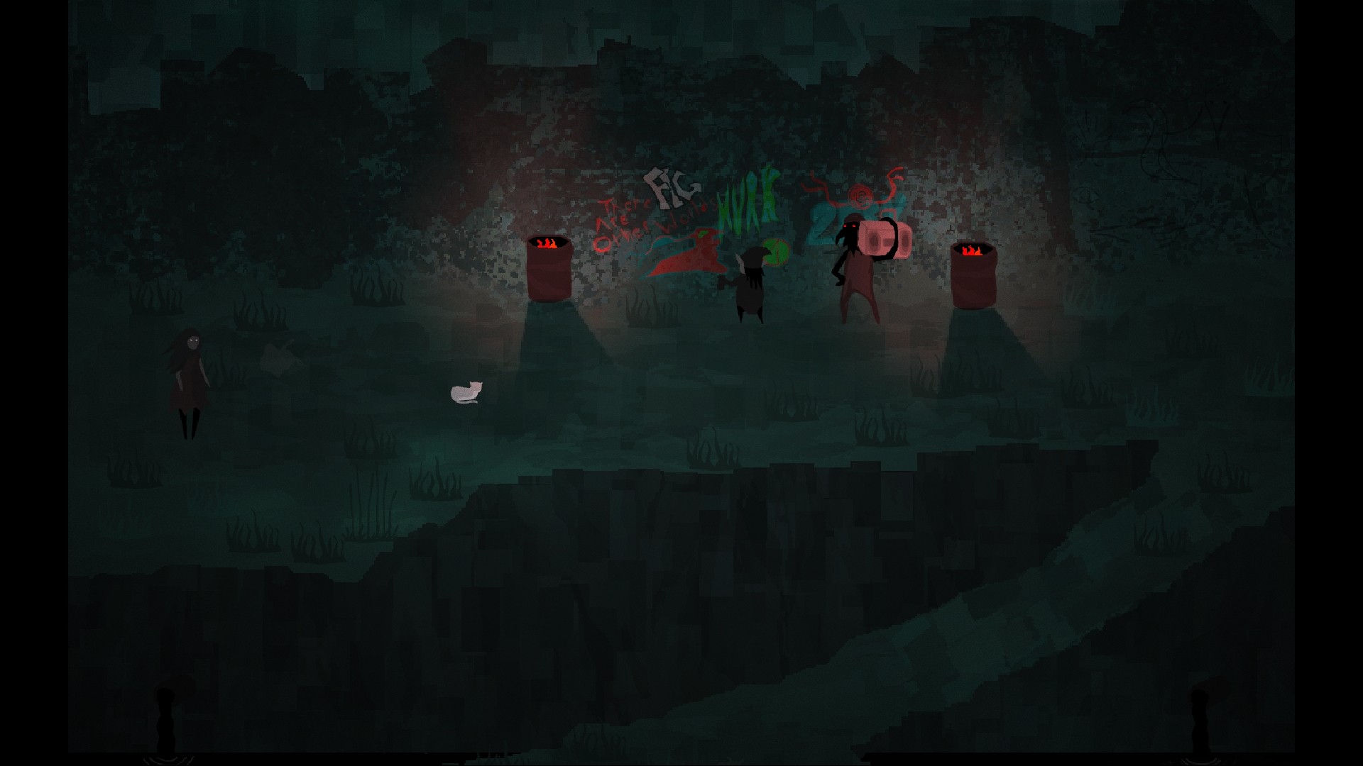 Die Grafik ist minimalistisch gehalten. Gerade die Charaktere sind nur grob gezeichnet. Zum Teil fehlen ihnen Mund und Nase und sie bewegen sich steif. Größtenteils wurden eher düstere Farben gewählt, manchmal ist nur eine Treppe zu sehen und der restliche Hintergrund ist schwarz. Die Randbereiche werden sowieso immer dunkel eingefärbt. Neue Orte sind erst sichtbar, wenn die Protagonistin ihren Weg fortsetzt. Dennoch ist auch im ländlichen Bereich nicht alles so einsam, wie es zunächst scheint. Überall trifft unser Charakter auf Tiere. Teilweise nur in Textform, häufig auch sichtbar, wenn zum Beispiel ein Kühlschrank voll mit Ratten geöffnet wird. Diese Tiere haben dann auch nette Animationen spendiert bekommen. So schließt eine Ratte selbstständig die Kühlschranktür, wenn wir uns ein Stück davon entfernen. Nach und nach werden die Gebiete zivilisierter und der Spieler trifft auf andere mysteriöse Personen. Auch ansonsten findet im Hintergrund meistens Bewegung statt. So wiegen sich Grashalme und Lampen im Wind. Zwar sehen diese alle gleich aus, dennoch tragen sie zur Atmosphäre bei.