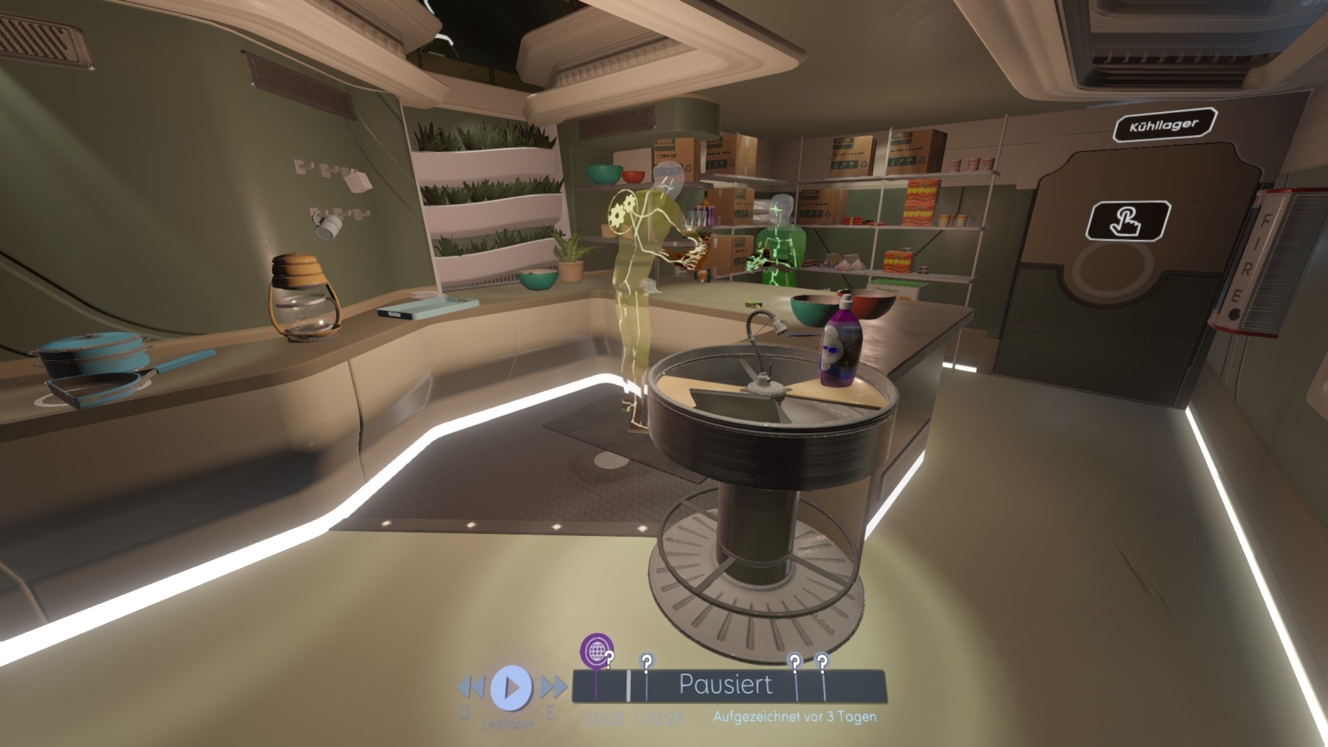 Grafisch macht das Spiel einen guten Eindruck. Zwar ist der Blick aus dem Fenster in der Regel wenig spannend - mehr kann bei der Sicht auf den Weltraum wohl auch nicht erwartet werden, doch die Station wurde hübsch und abwechslungsreich gestaltet. Kleine Details lassen sich überall entdecken. Haargummis, Shampoo, Getränkedosen können angefasst und näher betrachtet werden. Mit der Taste C kann der Spieler sogar in die Hocke gehen, um auch unter Tischen liegende Gegenstände zu entdecken. Mit der rechten Maustaste wird außerdem näher herangezoomt.