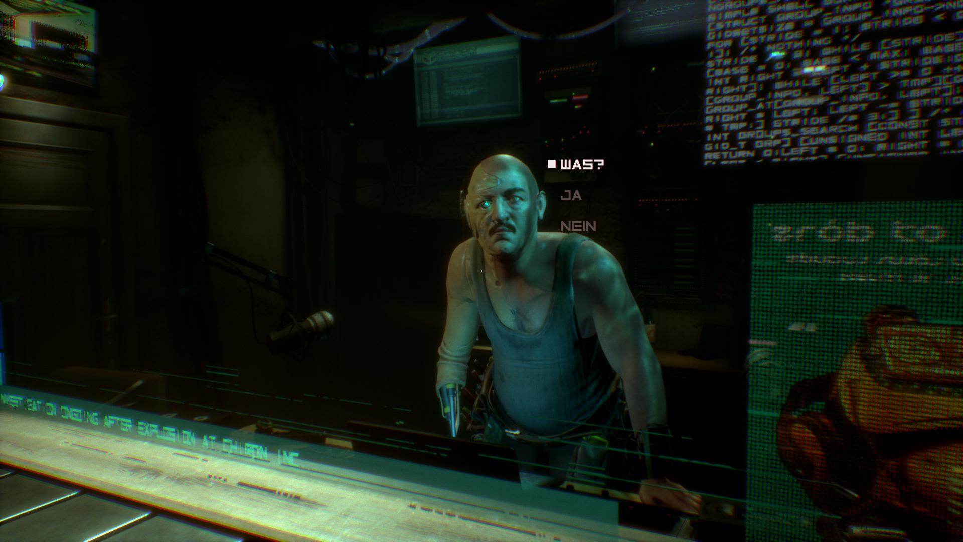 Der größte Pluspunkt von >observer_ ist die enorm starke Atmosphäre, die der Titel aufbaut. Zum einen sorgen die Umgebung und deren Inszenierung an sich schon für ein unheimliches Gefühl. Mit wenigen, dafür aber meist sehr gut gesetzten Jumpscares gibt es zahlreiche Schockmomente. Hinzu kommt die detailreiche und ekelhafte Darstellung der Ergebnisse von exzessiver Gewalt, sodass dieses Spiel definitiv nicht für alle Adventurefans geeignet ist. Abgetrennte Köpfe und Innereien gehören während der Ermittlungen zur Tagesordnung. Doch nicht nur diese oberflächlichen Elemente erzeugen den Horror. Auf einer weiteren Ebene entwickelt sich ein viel tiefergehendes Grauen. Denn je mehr der Spieler über die dunkle, verkommene Welt herausfindet, desto trostloser und bedrohlicher erscheint sie ihm – und dazu gar nicht so weit weg von den bereits heute verfügbaren technischen Möglichkeiten. Auf diese Weise zieht einen >observer_ mit fortschreitender Spielzeit immer tiefer in seinen Bann.