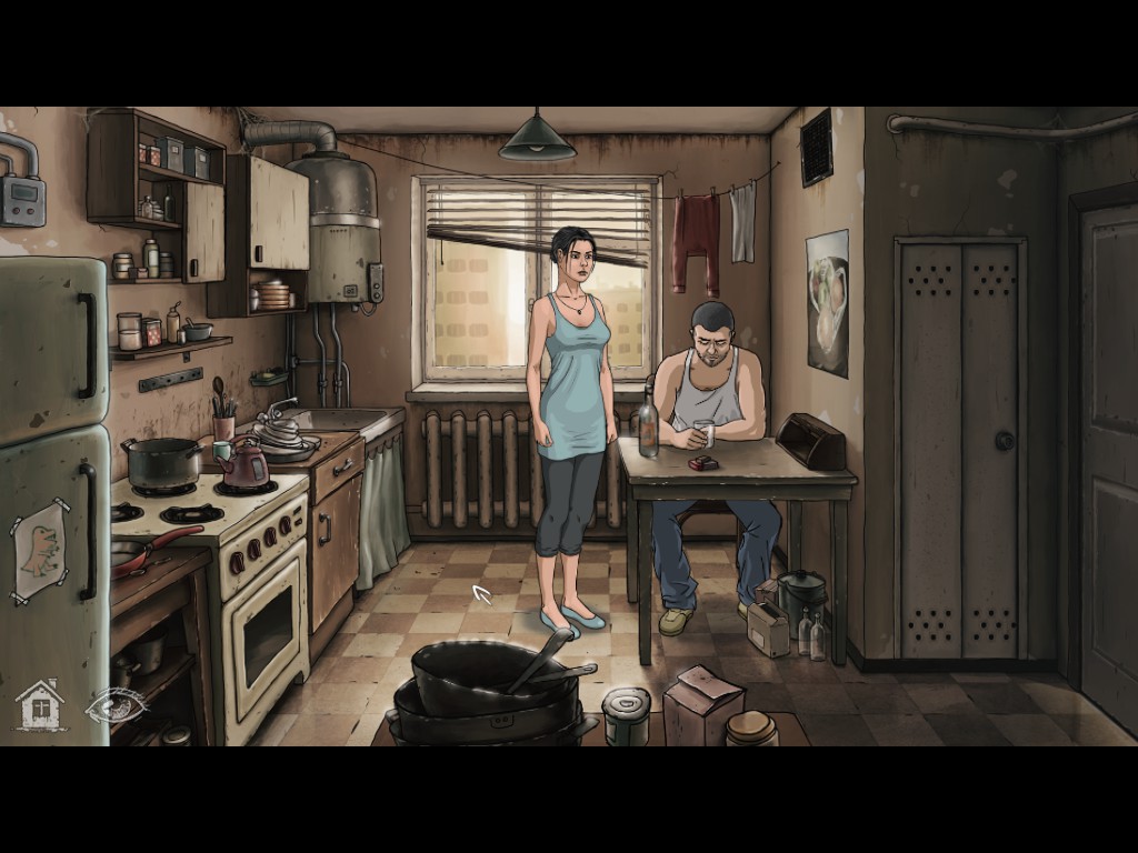 Während sich der Originaltitel noch in einem Sepia-Gewand mit bläulichen Einflüssen präsentierte, ist dem Remake ein gänzlich anderer Grafikstil vergönnt. Hier wird die Tristesse des Alltags in jener ärmlichen wie anrüchigen Wohngegend mit unbegrenzter Farbpalette abgebildet. Allzu satte Farbtöne wurden dabei aber geschickt vermieden, die Fassade bröckelt hingegen in allen Details. Schäbige Wände und ein verunreinigtes Treppenhaus verursachen mitnichten ein Gefühl des heimatlichen Wohlbefindens. An der hohen Qualität dieser Zeichnungen lässt sich kaum etwas bemängeln. Auch die Figuren, um 2012 von vergleichsweise konturloser Gestalt, fügen sich ideal in die tollen Hintergründe ein und offenbaren selbst im Mienenspiel ihre seelischen Wunden. Interessant ist zudem zu beobachten, dass die Charaktere niemals starr im Szenenbild verweilen, sondern immerzu natürliche Körperregungen zeigen. Eingangs- und Zwischensequenzen wurden, einer kalten Visual-Novel-Szene ähnelnd, in künstlerisch anspruchsvollen Standbildern umgesetzt und verleihen dem Geschehen auf diese Weise Nachdruck. Neben der realistitätsnahen Geräuschkulisse, die entferntes Getöse subtil hörbar macht, unterstreicht besonders der gelungene Soundtrack die Atmosphäre einwandfrei. Jene stets depressiv gestimmten Musikstücke wirken mit ihren sanften Pianoklängen nie allzu aufdringlich. Dialoge wurden allerdings nicht vertont, die Lektüre der Bildschirmtexte bleibt erforderlich. Diese sind bislang nur in englischer, russischer und ukrainischer Sprache integriert.