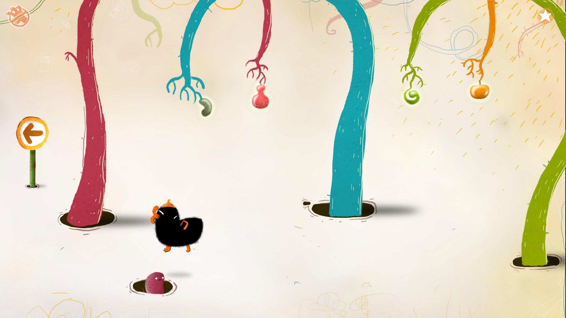 Alle Charaktere im Spiel sind gnadenlos überzogen und stark gewöhnungsbedürftig. Was in austarierten Dosen in Botanicula noch gut gelungen war, wirkt in Chuchel deutlich zu stark übertrieben. Die auftretenden Wesen und Ereignisse sind so verzerrt, dass sie streckenweise schon fast verstörend wirken. Für Kinder ist der Titel daher definitiv nichts. Hinzu kommt, dass sich durch die grafische Gestaltung alles auf die Charaktere konzentriert. Die fast leeren Hintergründe bieten nicht mehr als ein paar Striche und Farben. Das soll jedoch nicht in Abrede stellen, dass der Titel mit viel Hingabe inszeniert wurde.