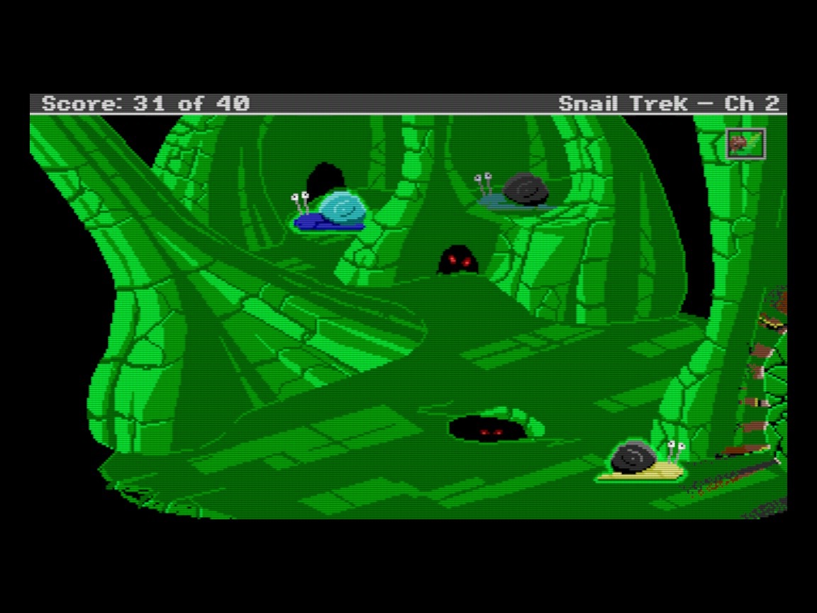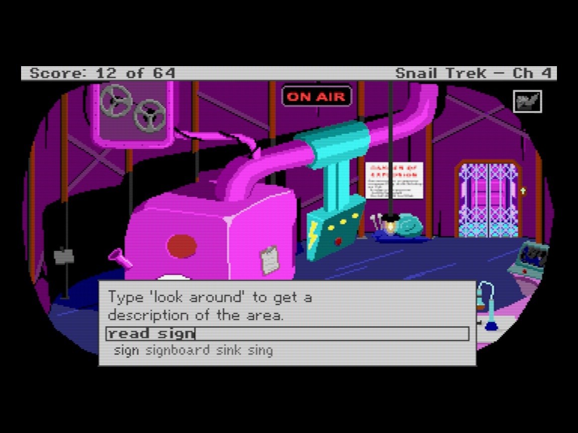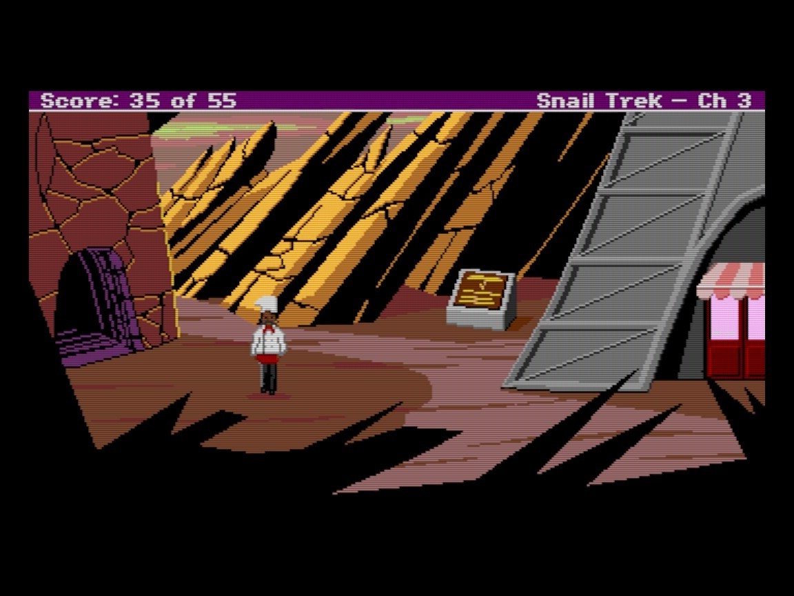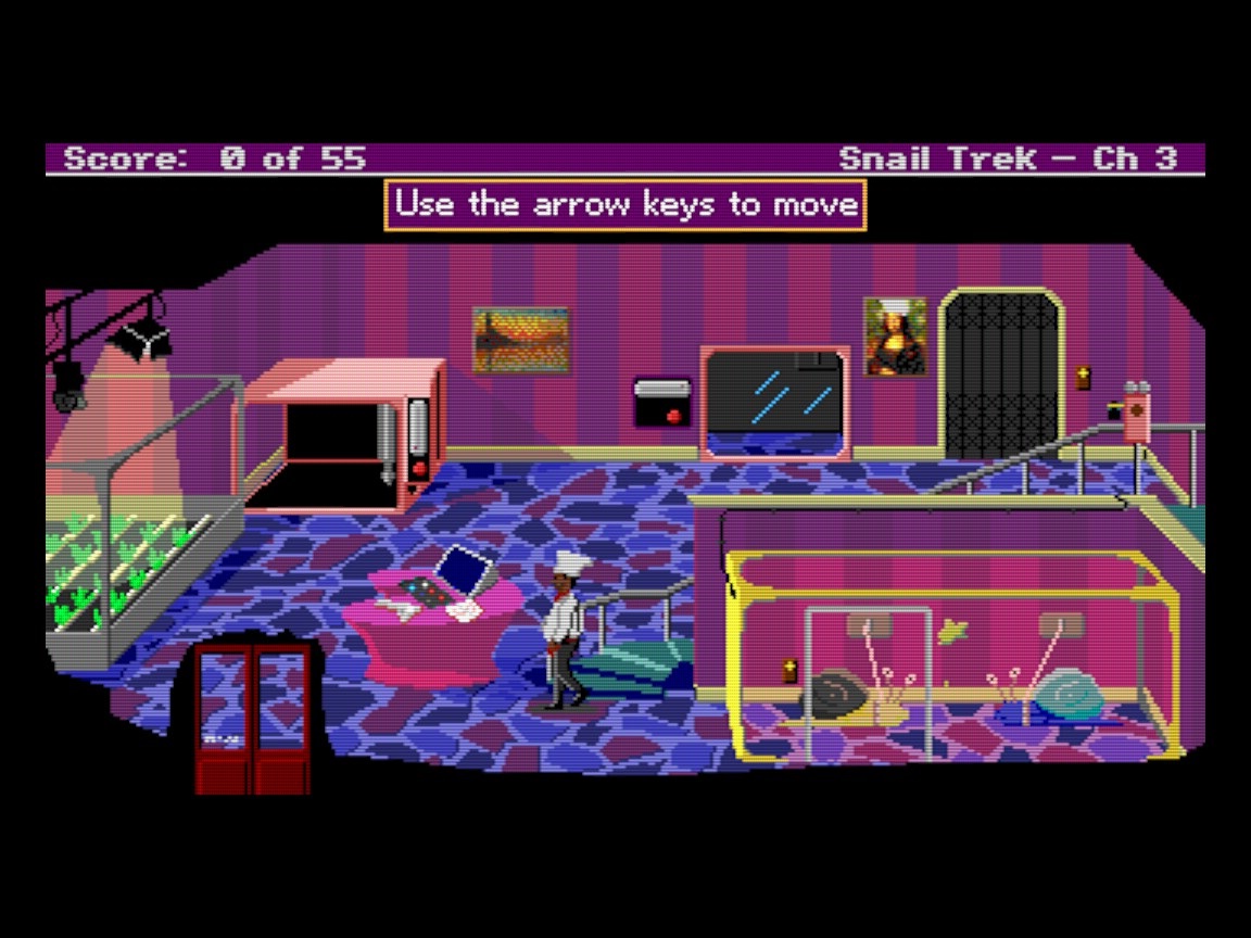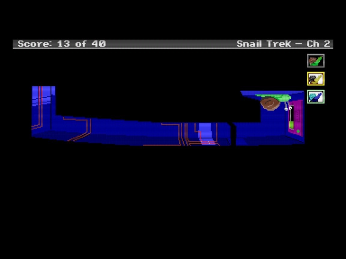 Mehr als zwanzig Jahre sind verstrichen, seit wir Roger Wilco, den wohl beliebtesten Hausmeister der Adventure-Historie, auf seinem letzten haarsträubenden Weltraumabenteuer begleiten durften. Was sich damals schon in hochauflösendem Super-VGA erleben ließ, begann in den 80ern dereinst mit Texteingabe und einer EGA-Grafik, welche heute bestenfalls von hoffnungslosen Nostalgikern als ästhetisch empfunden wird. Womöglich ist es aber gerade die wertvolle Erinnerung an jene verlorene Zeit, die aufstrebende Spieleentwickler wie Phil Fortier dazu antreibt, sich auf Genre-Parodien im besagten Gewand zu spezialisieren. Als Hommage an die soeben umschriebene Sierra-Reihe Space Quest rief dieser nämlich vier minimalistische Independent-Adventures ins Leben, in denen sich halbverhungerte Schnecken nach Vorbild einer Enterprise-Crew auf einer hochtechnisierten Kommandobrücke tummeln und sich anschließend auf eine bedeutsame Forschungsmission begeben. Snail Trek erschien ab November 2017 quasi in monatlichen Salathäppchen – kein Schneckentempo also, sondern zumindest gemäßigte Lichtgeschwindigkeit.