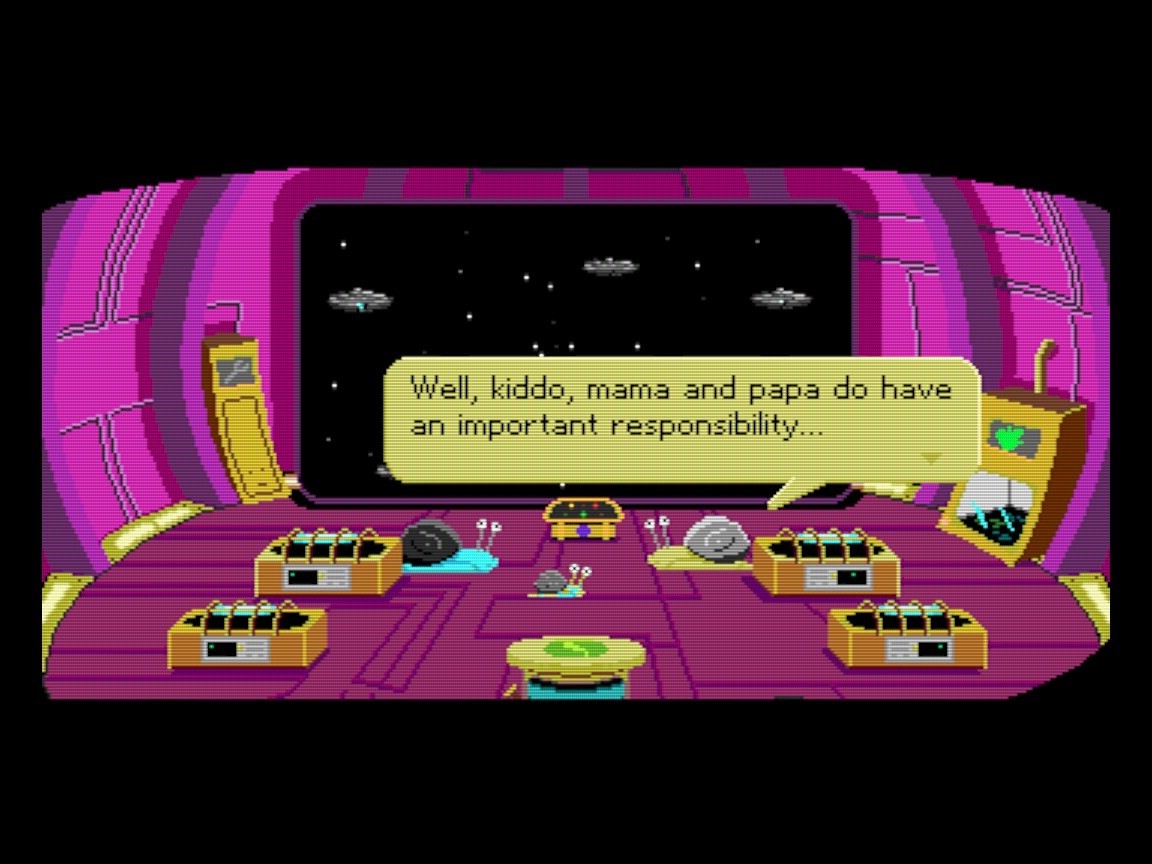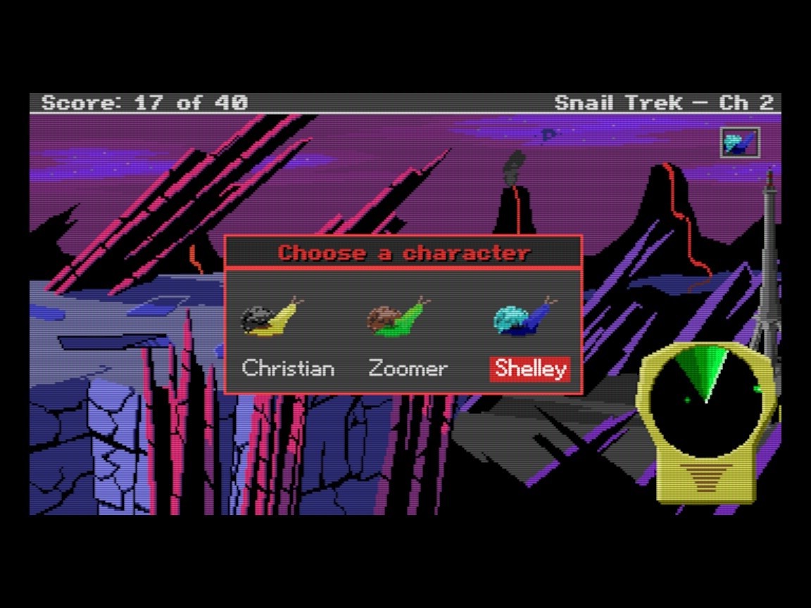 Rasch dürfte der Spieler bemerken, dass unsere Protagonisten keine unbedarften Weinbergschnecken darstellen, sondern vielmehr technisch versierte Vertreter ihrer Gattung. Um die Landung des muschelförmigen Sternenschiffs auf dem Planeten zu ermöglichen, sind zunächst einige Reparaturmaßnahmen zu absolvieren. Während Christian diese Aufgaben noch selbständig erledigen möchte, stehen ihm seine beiden Kollegen in der zweiten Episode nunmehr tatkräftig zur Seite. In altbekannter Maniac-Mansion-Manier kann dann beliebig zwischen drei Hauptcharakteren gewechselt werden, was sich äußerst positiv auf das Rätseldesign auswirkt. Etwas kniffliger wird es durchaus, wenn der Spieler die dreiköpfige Schneckencrew auf den Planeten lotsen muss. Da sich die Besatzungsmitglieder ihrer natürlichen Bodenhaftung nicht entziehen können, ist mitunter eine Manipulation der Schwerkraft erforderlich. Hierbei bleibt der eiserne Zusammenhalt von Christian, Zoomer und Shelley unverzichtbar, denn der eine ist stets auf die Hilfe des anderen angewiesen.