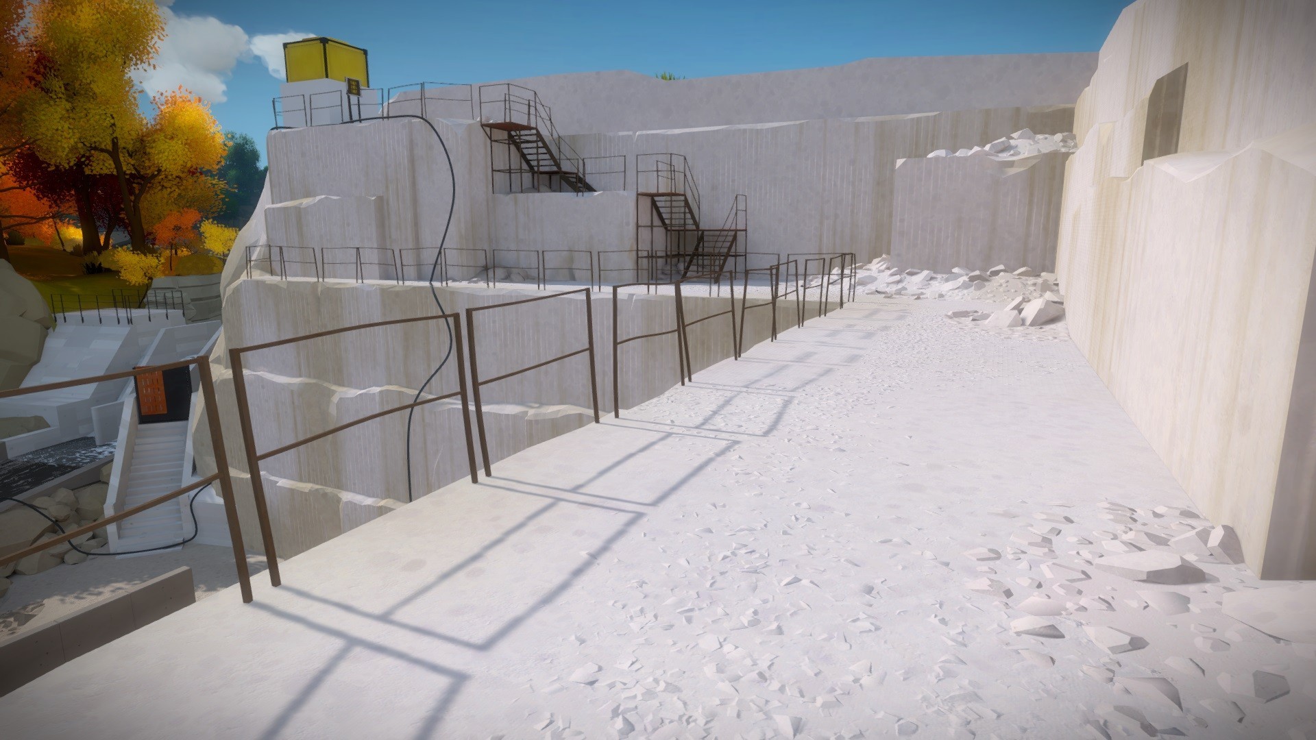 Unvermittelt wird der Spieler in Egoperspektive in einen Gang gebracht. Dort findet er eine Schaltfläche vor, auf die er eine Linie zeichnen kann. Die Tür dahinter schwingt auf und kurze Zeit darauf wird zum ersten Mal eine riesige Insel voller unterschiedlicher Landschaften betreten. In der Ferne, fast von jedem Punkt aus sichtbar, reckt sich ein Berg in den Himmel. Vollkommen frei können alle Gebiete des Eilands erkundet werden – wenn nicht Schaltflächen den Weg blockieren. Allen ist gemeinsam, dass dort Linien eingezeichnet werden müssen. Was einfach klingt, kann höllisch schwer werden. Sehr sogar. Mit fortschreitendem Verlauf werden selbst erfahrene Spieler stark gefordert. Und an einigen Stellen wird auch die Grenze zum Thema Fairness zumindest stark tangiert. Hinzu kommen zwei Rätsel, bei denen selbst mir als sehr, sehr resistentem Spieler und erfahrenem VR-Piloten speiübel geworden ist. Die gilt es zu überstehen – oder an jemanden mit stärkerem Magen abzugeben. Durch die Größe der Insel und die Vielzahl der Aufgaben ist der Ausflug wohl kaum unter 30 Stunden zu schaffen. Zahlreiche Abenteurer sprechen sogar von dreistelligen Spielzeiten, um wirklich alles zu entdecken, was für das Erreichen des Endes nicht zwingend notwendig ist.