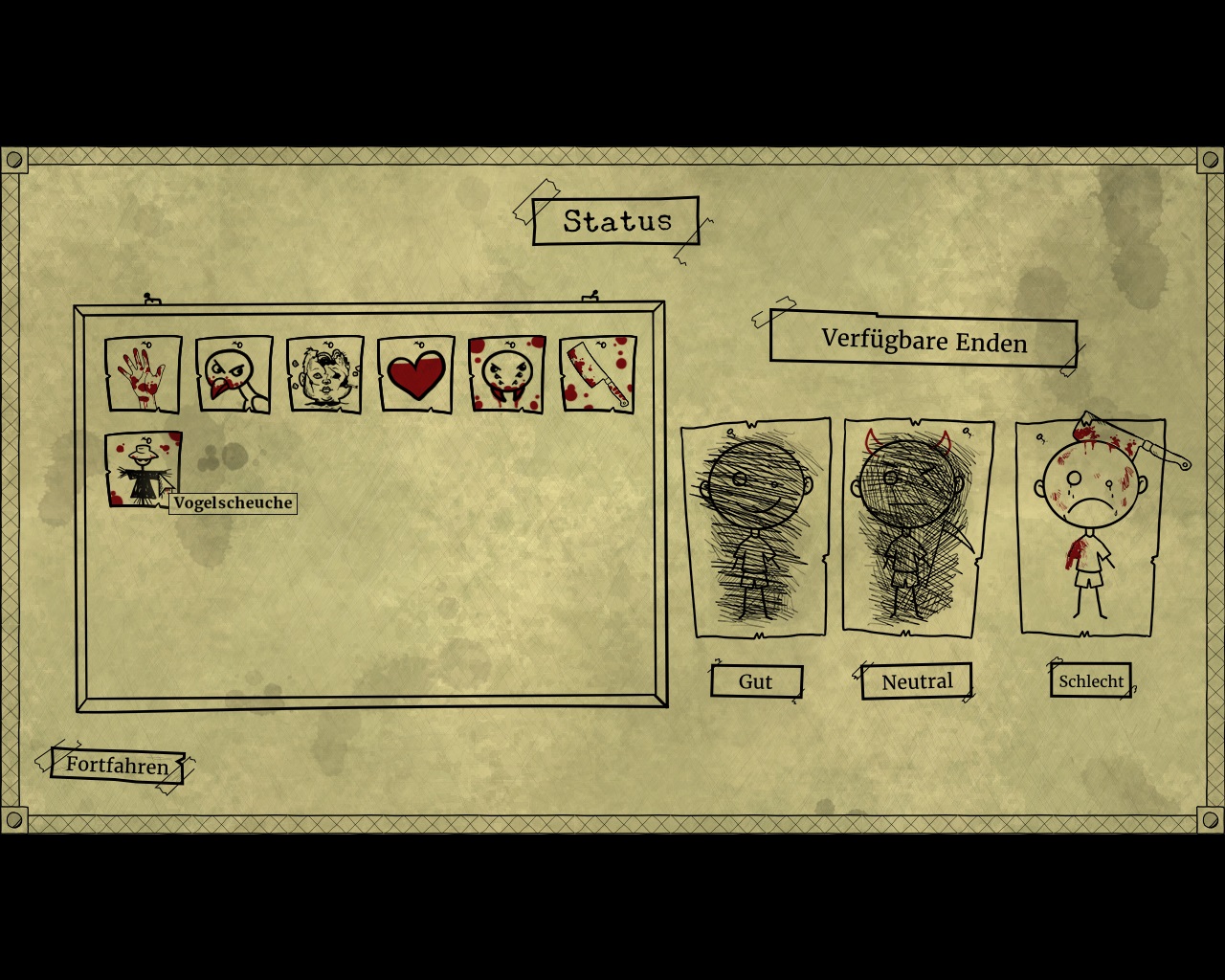 Mancherorts lauern unliebsame Kreaturen, wenngleich diese niemals eine unmittelbare Gefahr darstellen. Wer sich nämlich innerhalb des Traumgefüges bewegt, bleibt stets vom Tode verschont. Fürchten dürfte sich der Spieler vielmehr vor den eigenen Entscheidungen. So kann bereits eine noch so kleine Aktion den Handlungsverlauf immens beeinflussen. Der Psychopath, welcher ohne Rücksicht auf Verluste agiert, hat sein Karma-Konto rasch ruiniert. Er zermatscht Spinnen, erschlägt Krähen und sticht dem Spanner hinter dem Guckloch der Dusche das lüsterne Auge aus, um nur einige denkbare Gräueltaten zu nennen. Sowohl gutes als auch schlechtes Handeln verändert große Teile des Spielgeschehens und sogar der Rätselstruktur. Bad Dream: Coma umfasst also drei grob unterschiedliche Lösungswege mit jeweils individuellem Finale und einem zeitlichen Umfang von etwa vier bis fünf Stunden, womit es zu einem ungewohnt hohen Wiederspielbarkeitswert beiträgt. Als Orientierungshilfe dient die Übersicht verfügbarer Enden im Optionsmenü. Dort abgebildete Strichmännchen symbolisieren das gute, das neutrale sowie das schlechte Gewissen des Träumers. Sobald ein solches überkritzelt wurde, bleibt dem Spieler der besagte Pfad fortan verwehrt. Wer seine weiße Weste nicht mit Blut beflecken möchte, sieht sich zugleich mit dem höchsten Schwierigkeitsgrad konfrontiert. Fehler sind generell schnell begangen.