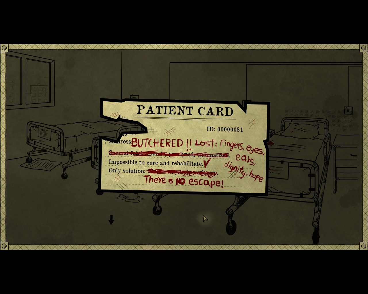 Spätestens zu Beginn des Krankenhaus-Kapitels zeigt sich Bad Dream: Coma ebenso von seiner abstoßenden Seite. Wenn ein Patient plötzlich seinen Darm verliert und das besagte Organ inmitten einer Blutlache zu Boden fällt, sollte der Spieler seine letzte Mahlzeit idealerweise schon verdaut haben. Diese Lust am Morbiden teilt Desert Fox mit den Machern der Rusty-Lake-Saga.