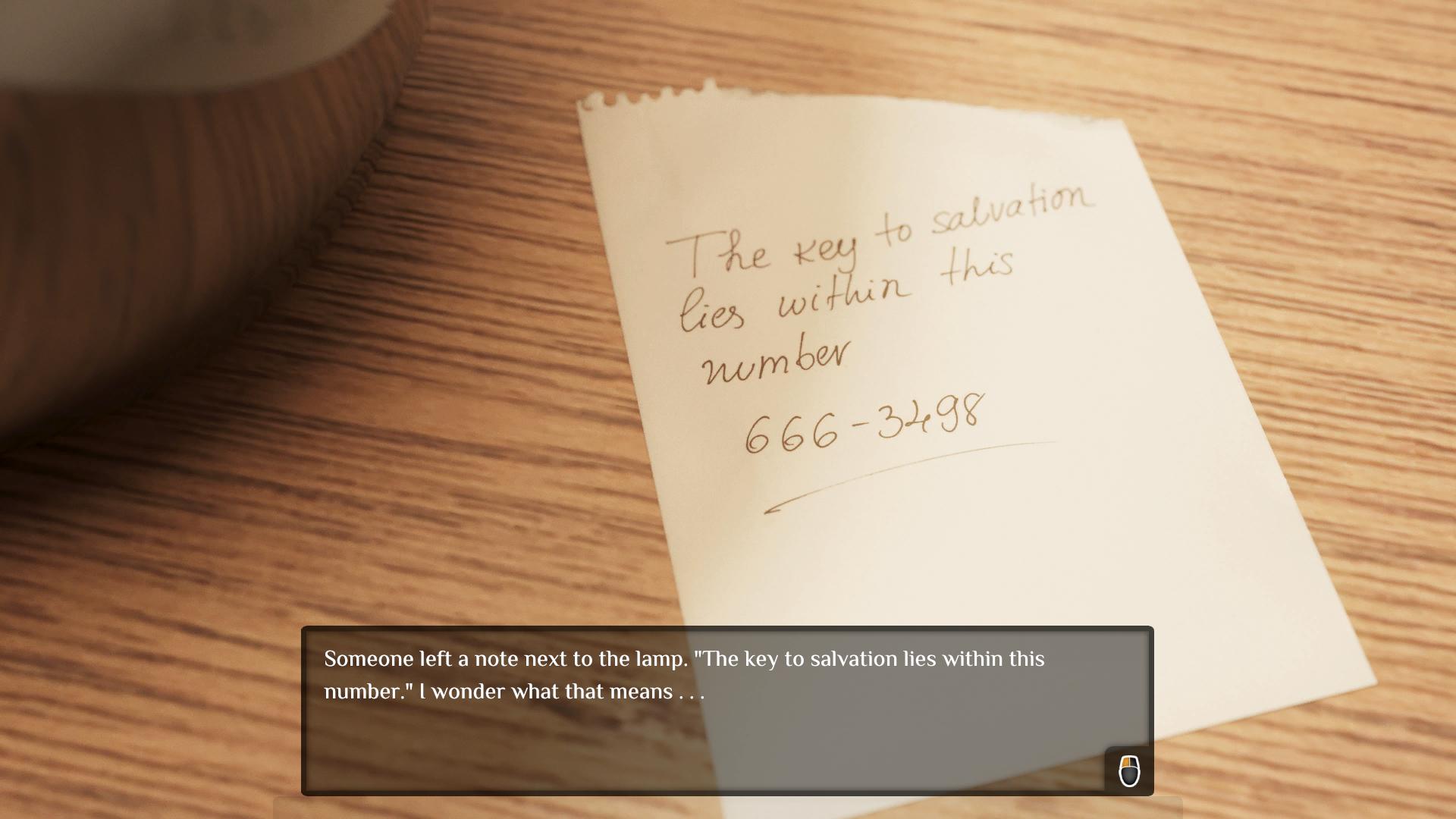 Mehr als die linke Maustaste wird für das Spiel nicht benötigt. Durch Klicks werden Räume gewechselt, Zahlen eingestellt, Objekte eingesammelt und an passender Stelle automatisch verwendet. Hotspots werden mit einer Lupe markiert. Pixelhunting kann dabei an einigen Stellen zu unnötigen Hängern führen.