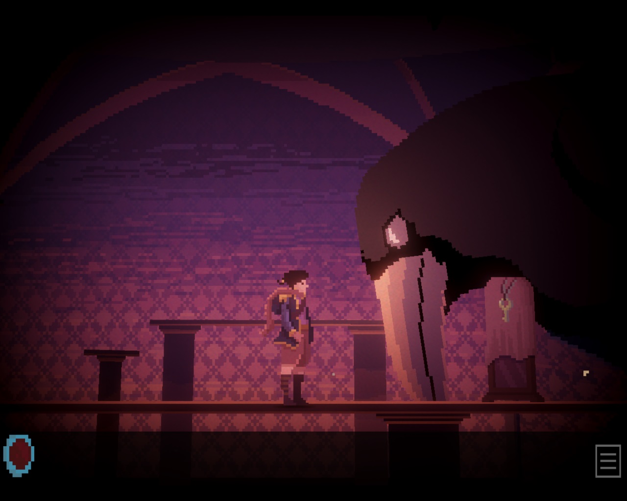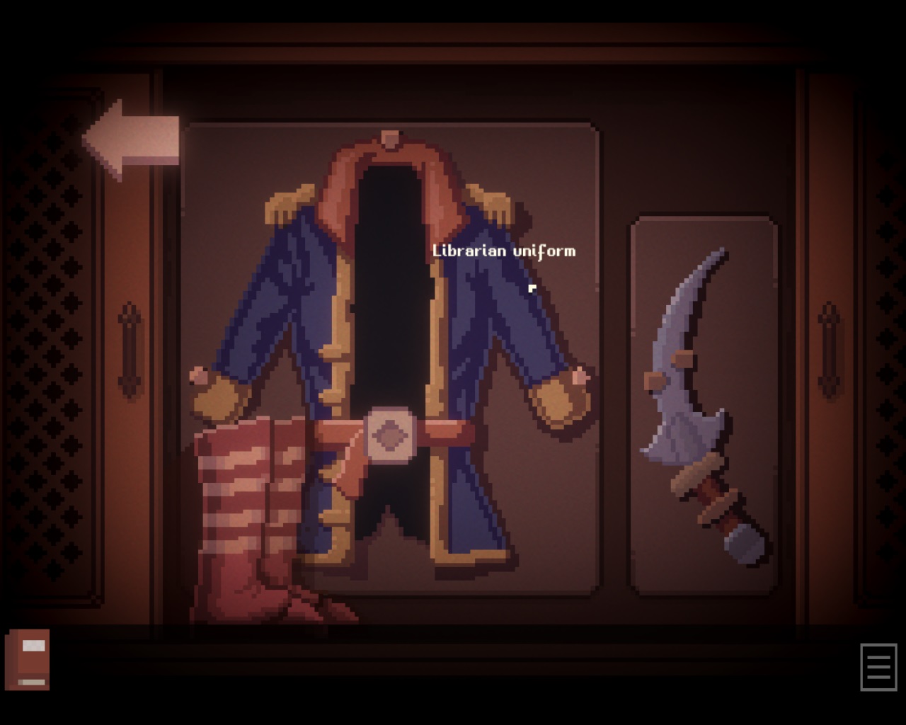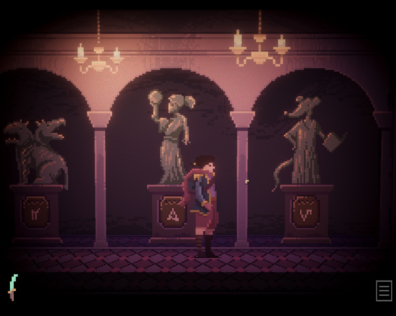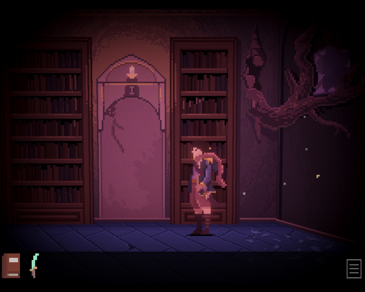 Die scheinbar mittelalterliche Umgebung präsentiert sich in einem detailverliebten Pixelstil, der von herausragender Kunstfertigkeit und einer ungewöhnlichen Farbgebung zeugt. Während beharrlich glimmende Fackeln die Nacht erhellen, ist die Architektur des altertümlichen Städtchens dominiert von blauen, pinken oder purpurnen Nuancen. Derweil tobt ein unbeugsamer Schneesturm, die weißen Flocken verlieren sich in alle Himmelsrichtungen. Sogar der eisige Atem der Protagonistin ist erkennbar, in beheizten Räumen vernimmt der Spieler ihr pochendes Herz. Das Gewand von Bibliothekarin Liz ähnelt übrigens dem eines Piraten, was der Seelendolch an ihrer Hüfte zudem wunderbar unterstreicht. Mit Stiefeln und blauem Jackett erinnert sie beinahe an einen gewissen Guybrush Threepwood. So erweckt eine nächtliche Bibliotheksinspektion vielmehr den Eindruck einer Abenteuerreise.