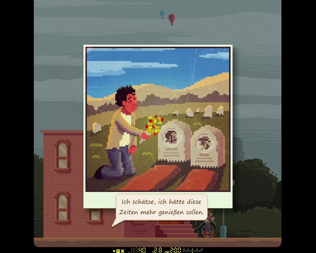 Wir alle begehen hin und wieder Fehler, kleinere sowie größere. Mitunter sehnen wir uns danach, eine in der Vergangenheit getroffene Entscheidung zu revidieren. Diese menschlichen Schuldgefühle und jener Wunsch nach einem Neubeginn bilden das Fundament für Photographs. Deshalb gelingt es Luca Redwood, den Spieler mit seinen Geschichten zu berühren. Seine Protagonisten sind nicht etwa skrupellose Kriminelle oder geborene Antihelden, sondern gewöhnliche, im Grunde sympathische Leute, mit denen sich der eine oder andere zu identifizieren vermag. So besticht das interaktive Drama in fünf Episoden durch seine einfühlsame Erzählweise, die bezaubernde Pixelgrafik und die ebenso stimmige Musikuntermalung.