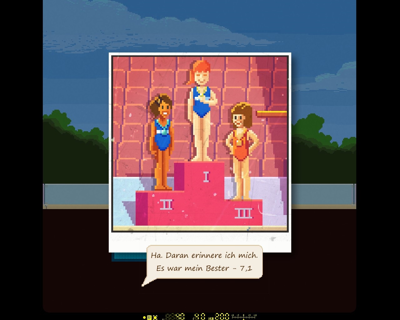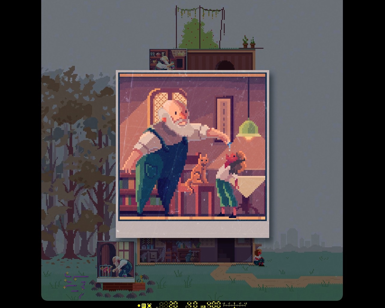 Den Schauplatz des Geschehens bildet jeweils ein detailverliebt dargestelltes Diorama, also eine Art virtueller Schaukasten mit statischen Figuren. Auch der Vergleich mit einem Wimmelbilderbuch drängt sich dem Spieler rasch auf, obwohl Redwoods Kurzgeschichten mitnichten als kindgerecht einzustufen sind. Nach jedem erzielten Fortschritt sind zudem neue Entwicklungen sichtbar. Gebäude werden modernisiert und ausgebaut, Kolonisten schlagen ihre Lager auf, Automobile aus dem vergangenen Jahrhundert verschwinden und ein gewachsenes Publikum bejubelt die Sportlerinnen. Mit einem Mausklick kann der Spieler bequem in die Nahaufnahme wechseln und bessere Einblicke in Räume und Situationen erhaschen. Die von Octavi Navarro mit großer Hingabe gezeichneten Pixelszenarien zeugen von einem beachtlichen Realismus und bringen den Alltag sowie den Leidensweg der Charaktere in allen Facetten zum Ausdruck. Wie aber bereits der Titel des Spiels verkündet, treiben vor allem die Bilder ferner Tage, jene unvergänglichen Erinnerungen, die Handlung voran. Kleine Kunstwerke in Gestalt von Fotografien, die sich der Spieler mit Knobelaufgaben verdienen muss, enthüllen die süßen und die bitteren Momente aus dem Leben unserer Akteure. Doch der berührende Soundtrack von Ben Prunty vermag dem Spieler ebenso zu imponieren. Dieser fokussiert sich auf sanfte, verträumte Melodien, die einen Hauch von Traurigkeit vermitteln und die Atmosphäre ideal unterstreichen. Die Erzähler wurden darüber hinaus von talentierten Synchronsprechern vertont, welche den Protagonisten mehr Persönlichkeit verleihen. Wer übrigens eine Übersetzung benötigt, kann auf deutsche Untertitel zurückgreifen.