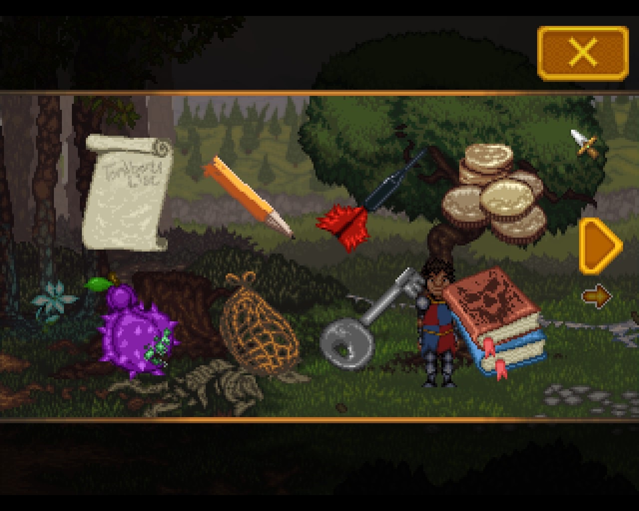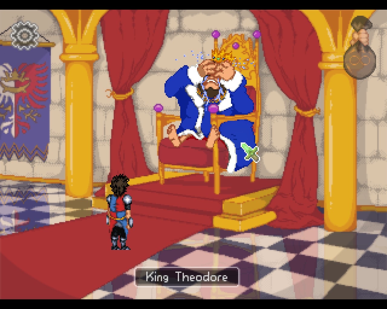 Das Verständnis der Steuerung stellt gewiss keine zusätzliche Hürde dar. Mit einem Rechtsklick können textlich hervorgehobene Hotspots betrachtet werden, die linke Maustaste dient der Interaktion. In einem Säckchen, das sich am oberen rechten Bildschirmrand verbirgt, verstaut Tondbert seine gesammelten Schätze. Diese kann der Spieler wiederum in einer separaten Inventaransicht auswählen und mit Gegenständen oder Lebewesen im Szenenbild benutzen. Es ist aber nicht möglich, diese Fundstücke untereinander zu kombinieren, was den Schwierigkeitsgrad von vorneherein entschärft. Die Lektüre einer Schriftrolle, die Tondbert immerzu bei sich trägt, ruft dem Spieler aktuell zu erledigende Aufgaben ins Gedächtnis. An jenem ereignisreichen Tage nämlich ist dem Helden unserer Geschichte keine Rast vergönnt. So kommt es etwa zu einer unverhofften Kollision mit einem Bienenvolk. Nach diesem Akt der Selbstzerstörung ist die Artikulationsfähigkeit des Protagonisten erheblich beeinträchtigt, sodass der Erwerb einer heilsamen Wurzel erforderlich ist. Später muss Tondbert detektivisches Gespür beweisen und die Bürger von Wrinkelwood nach dem Verbleib der Prinzessin befragen. Generell treiben Dialoge mit Nebenfiguren als zentrales Gameplay-Element den Spielfluss voran. Die Gesprächsführung erfolgt im traditionellen Multiple-Choice-Verfahren, wobei keine Symbole oder Stichwörter, sondern stets ausformulierte Sätze vorgegeben sind. Im Verlauf des Abenteuers gilt es meist, klassische Kombinationsrätsel zu absolvieren. Diese sind überwiegend schnell gemeistert, was einerseits den selten kniffligen Aufgaben und andererseits dem äußerst linearen Aufbau geschuldet ist. So kann Tondbert innerhalb eines Spielabschnitts bloß wenige Schauplätze zugleich besuchen, welche teils über eine Orientierungskarte miteinander verbunden und zugänglich sind. Lange Laufwege müssen also nicht befürchtet werden.