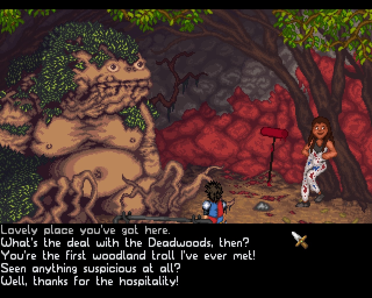 Die meiste Zeit verbringt der Spieler allerdings in der Nähe von Tondbert. Im Vergleich zu Simon The Sorcerer, um ein klassisches Vorbild zu nennen, verhält sich der tollpatschige Stadtwächter eher unterwürfig und behandelt sein Gegenüber stets mit Respekt. Dennoch gelangt er regelmäßig in peinliche wie irrwitzige Situationen, teils auch durch nächtliche Trunkenheit bedingt. Die Lachmuskeln werden dabei mitnichten verschont. Wenn Starborn 1000 Jahre später in die finstere Festung des Shoggoroth eindringt, weicht die ursprüngliche Heiterkeit umso mehr einer unheimlichen wie beklemmenden Stimmung.