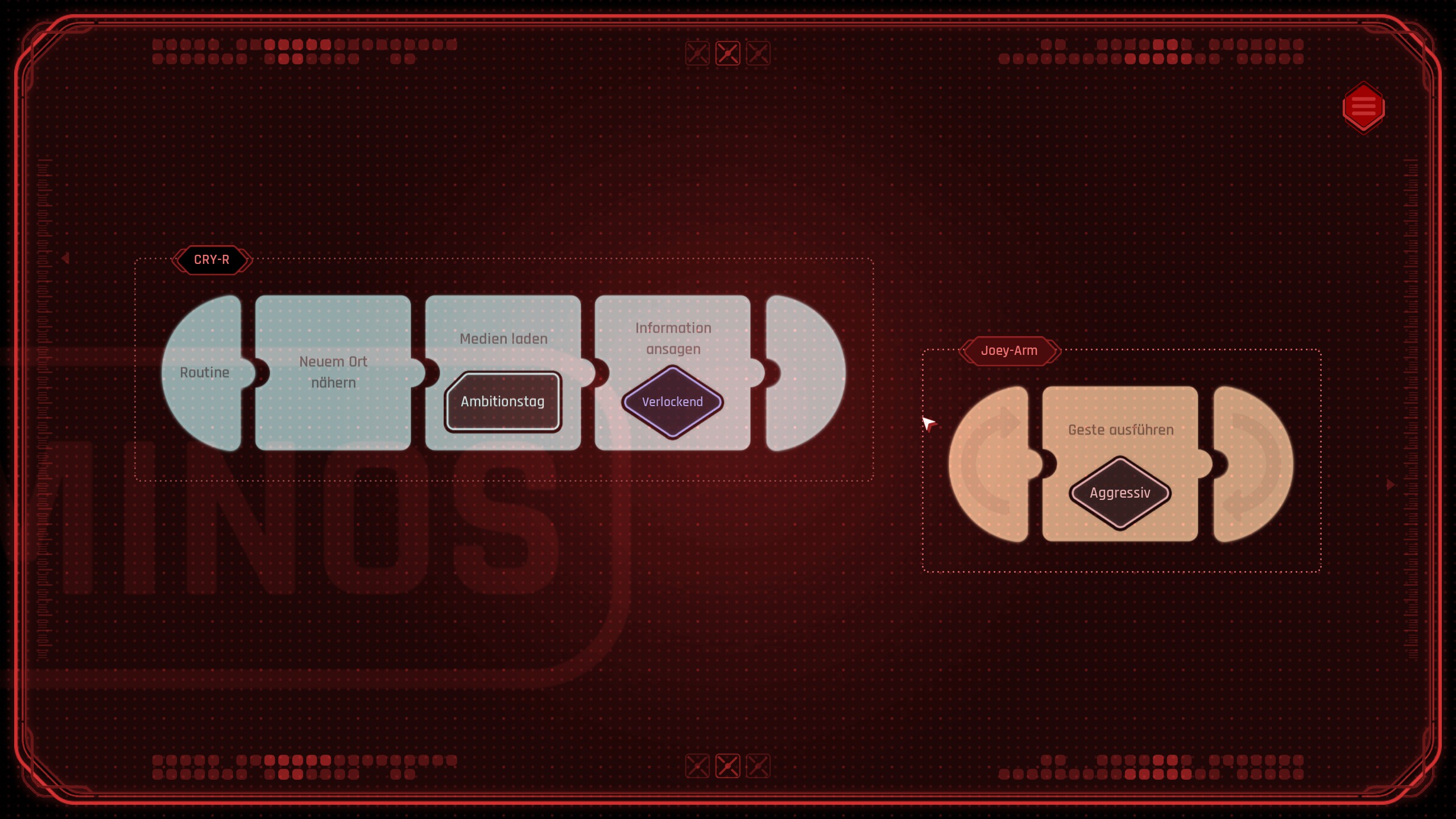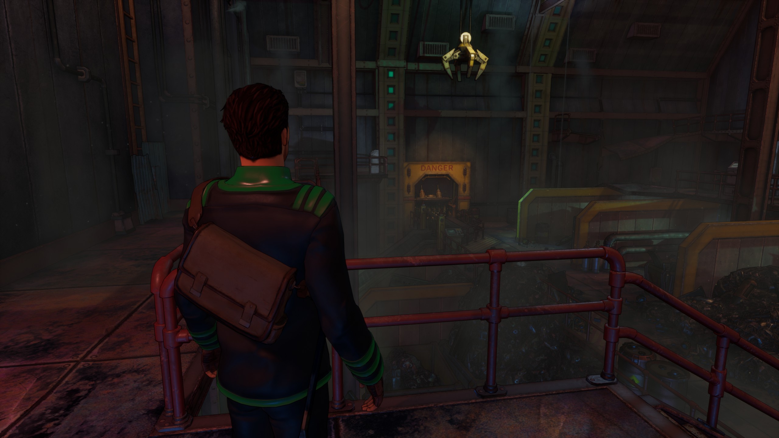 Zurück zum Hacking-Werkzeug, welches (zumindest gefühlt) für ungefähr die Hälfte der Rätsellösungen im Spiel zuständig ist. Auf Knopfdruck (bei Maussteuerung die rechte Maustaste) holt Foster den Scanner aus der Tasche, woraufhin sich bisher unbemerkte Hotspots auftun. Viele Geräte in Union City werden durch einfache Schaltlogiken dargestellt, deren Elemente sich durch das Hackingtool teilweise verschieben lassen. Die einfachste Variante ist, dass man die Reaktion auf eine Anfrage einfach umkehrt: Statt einer „Zugang verweigert“-Meldung öffnet sich für nicht Berechtigte die Tür, andere, die eigentlich rein dürften, müssen draußen bleiben. Bestimmte Subelemente lassen sich nicht nur innerhalb einer Maschine verschieben, sondern auch zum Beispiel vom Getränkeautomat auf einen Reinigungsroboter. Und von diesem dann wieder auf ein weiteres Gerät, das auf der Route des Reinigungsroboters liegt. So können Funktionen auch auf weiter entfernte Geräte übertragen werden, andere Möglichkeiten (wie in ein Inventar aufnehmen) bietet das Spiel nicht.