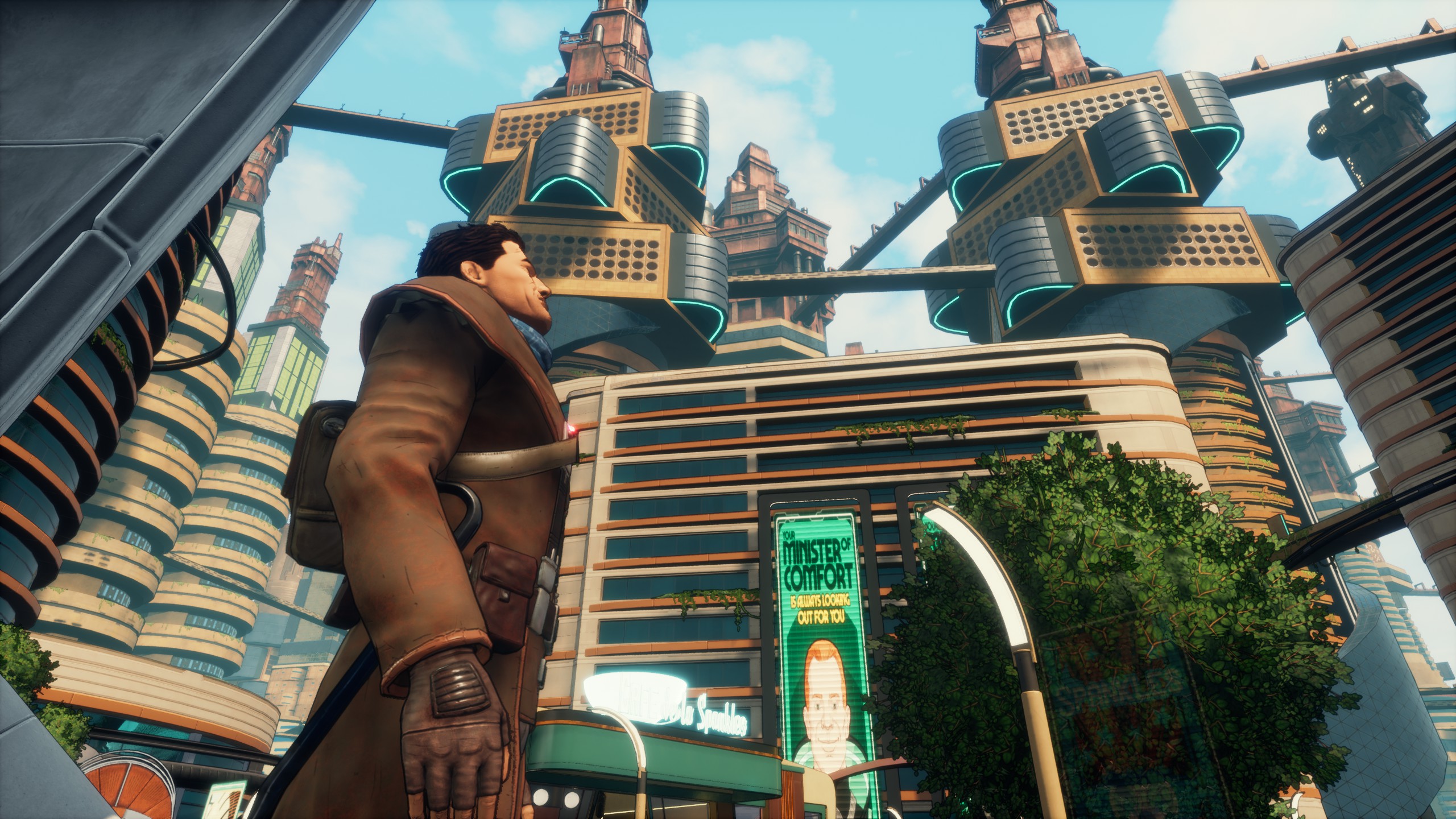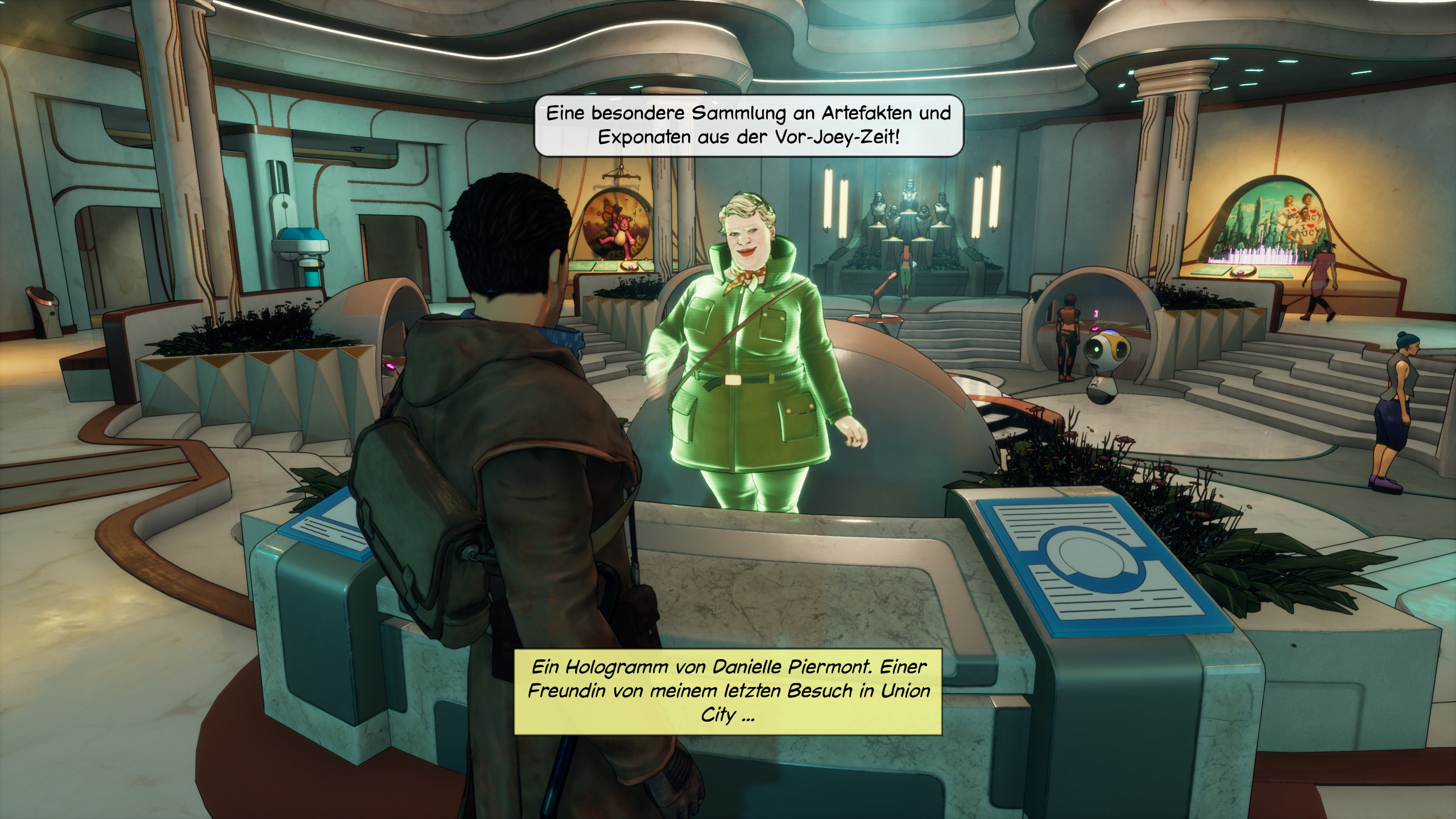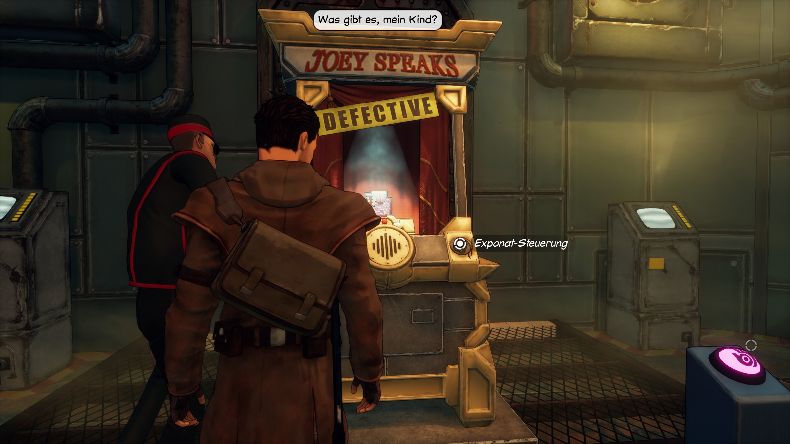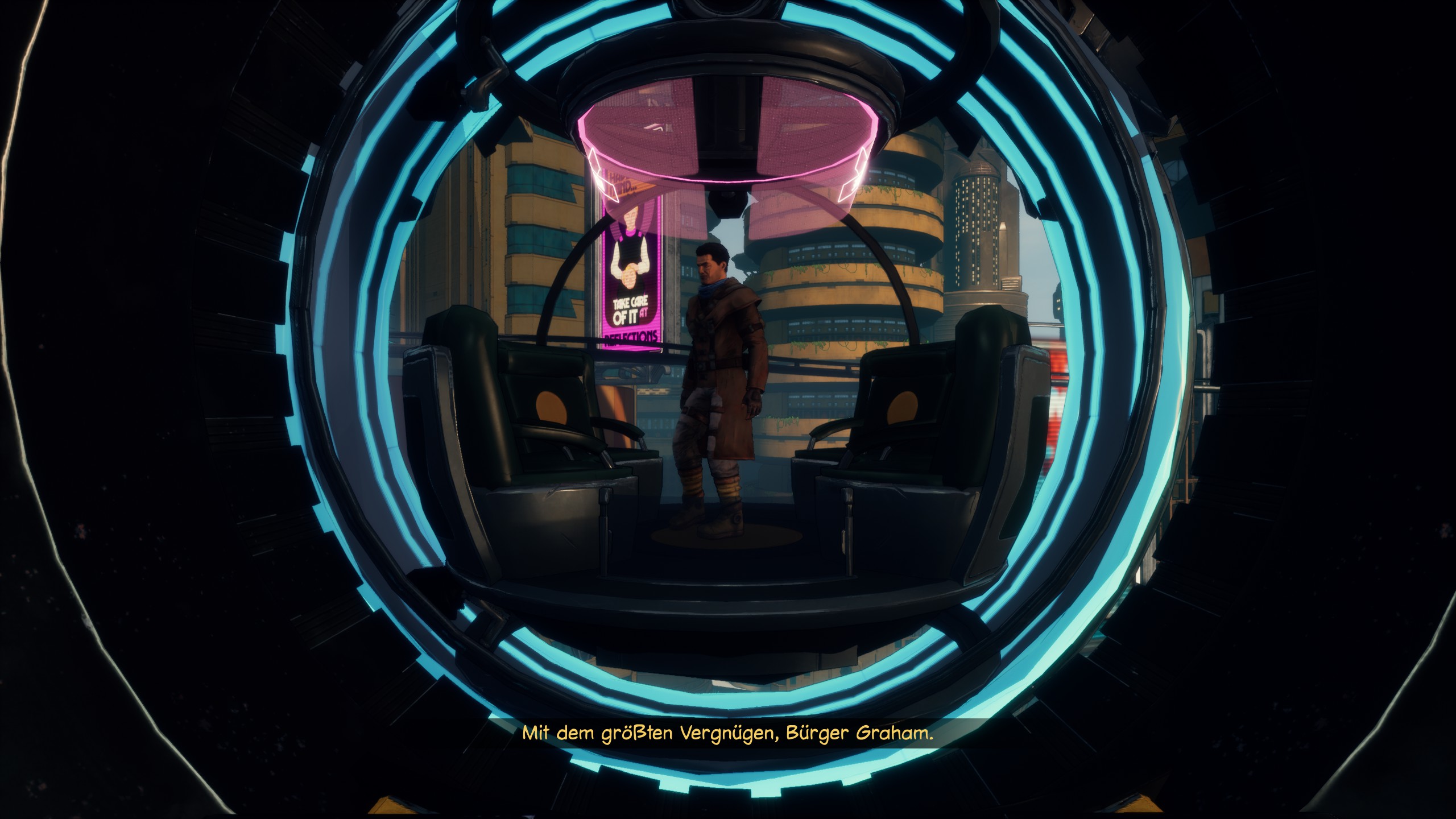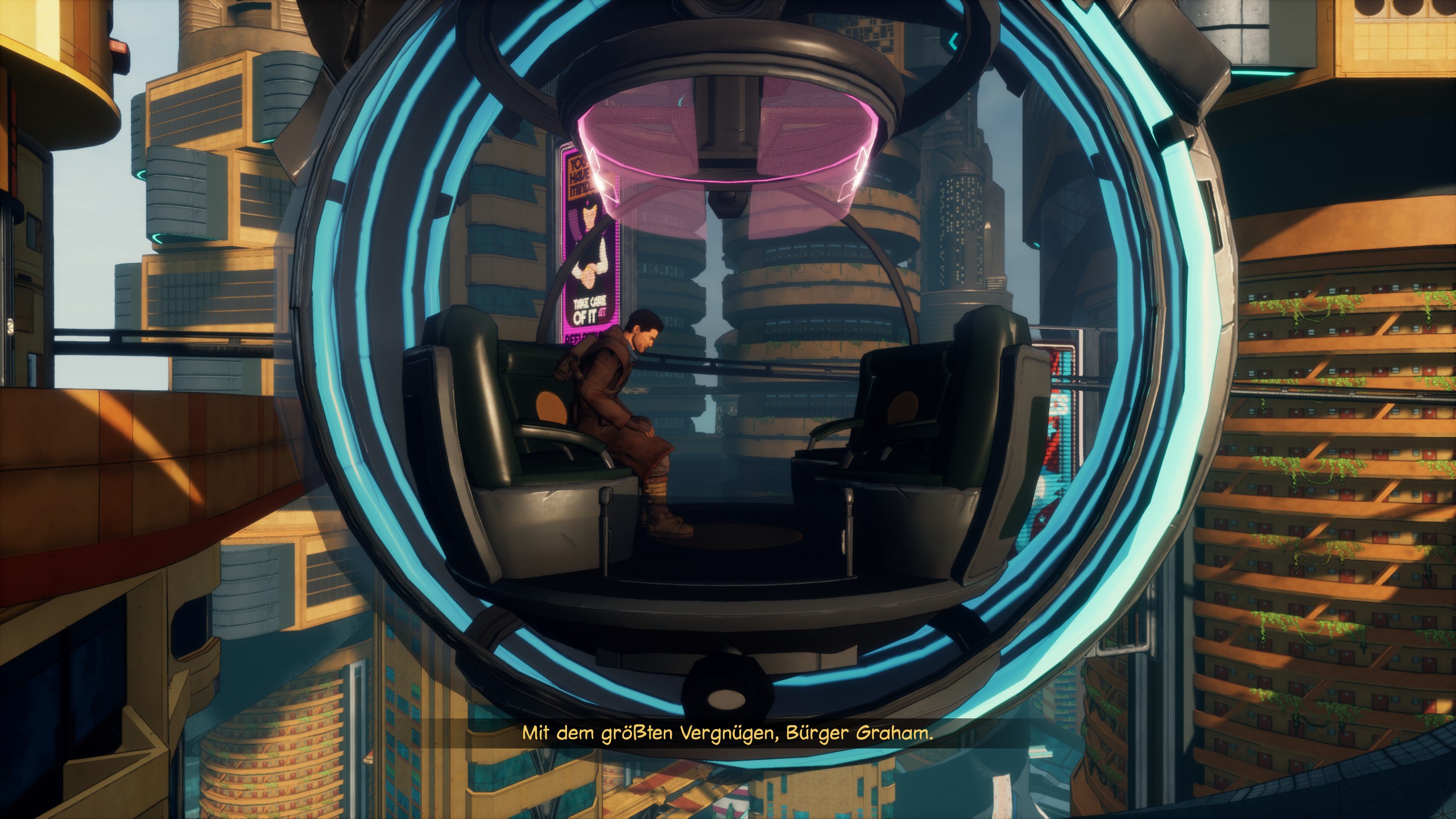Ganz ehrlich: Der erste Eindruck war alles andere als toll und sehr ernüchternd. Geplagt von extremen Slowdowns und einer nervösen Gamepad-Steuerung artete die erste Stunde mehr in Arbeit als in so etwas wie Spielspaß aus, so dass ich das Spiel zunächst frustriert zur Seite legte. Doch zum Glück gab es zeitnah einen ersten Patch, der die gröbsten technischen Mängel behob und durch meinen Wechsel auf Maus und Keyboard ließ sich das Steuerungsproblem auch einigermaßen lösen. Und ab diesem Zeitpunkt fesselte mich Beyond A Steel Sky, wie ich es mir nach den ersten Spielszenen eigentlich erhofft hatte. Toll geschriebene Dialoge, viele neue (und auch ein paar altbekannte) Charaktere, eine faszinierende Umsetzung von Union City im neuen Celshading-Look und eine interessante Geschichte ließen mich darüber hinwegsehen, dass ich manches Mal genervt hinter den NPCs her rennen musste oder die Hacking-Rätsel etwas zu viel Raum einnahmen. Letztendlich hatte ich nach meinen Anfangsschwierigkeiten viel Spaß mit Beyond A Steel Sky!